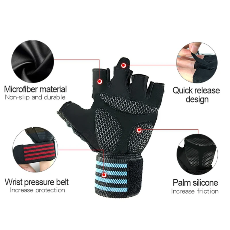 Breathable Safety Anti Slip Shock Absorbing Gloves For Workout Power Half Finger Gym Fitness Cyclin